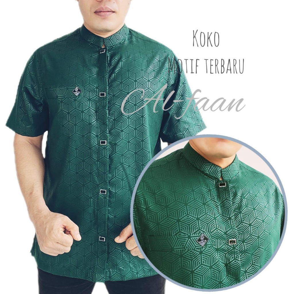 Kemeja Koko Lengan Pendek Pria Kemko Pria Kemeja kurta motif emboss lengan pendek