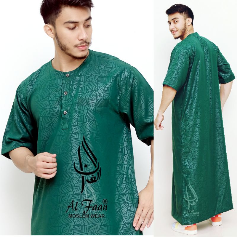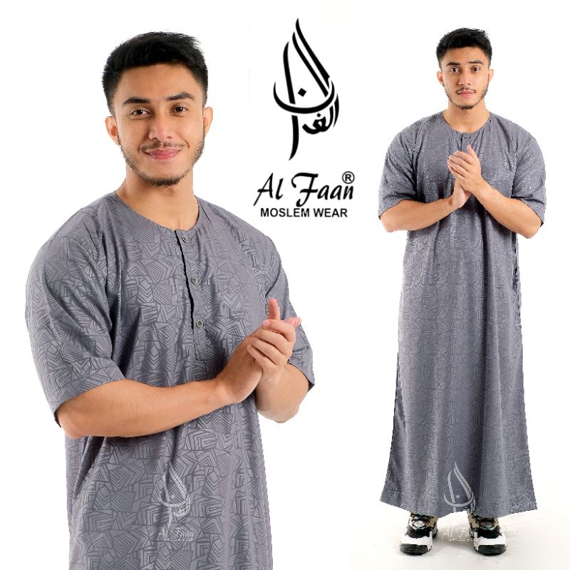 Gamis Jubah Pria Muslim Gamis Jubah Pria Lengan Pendek Motif emboss Alzan