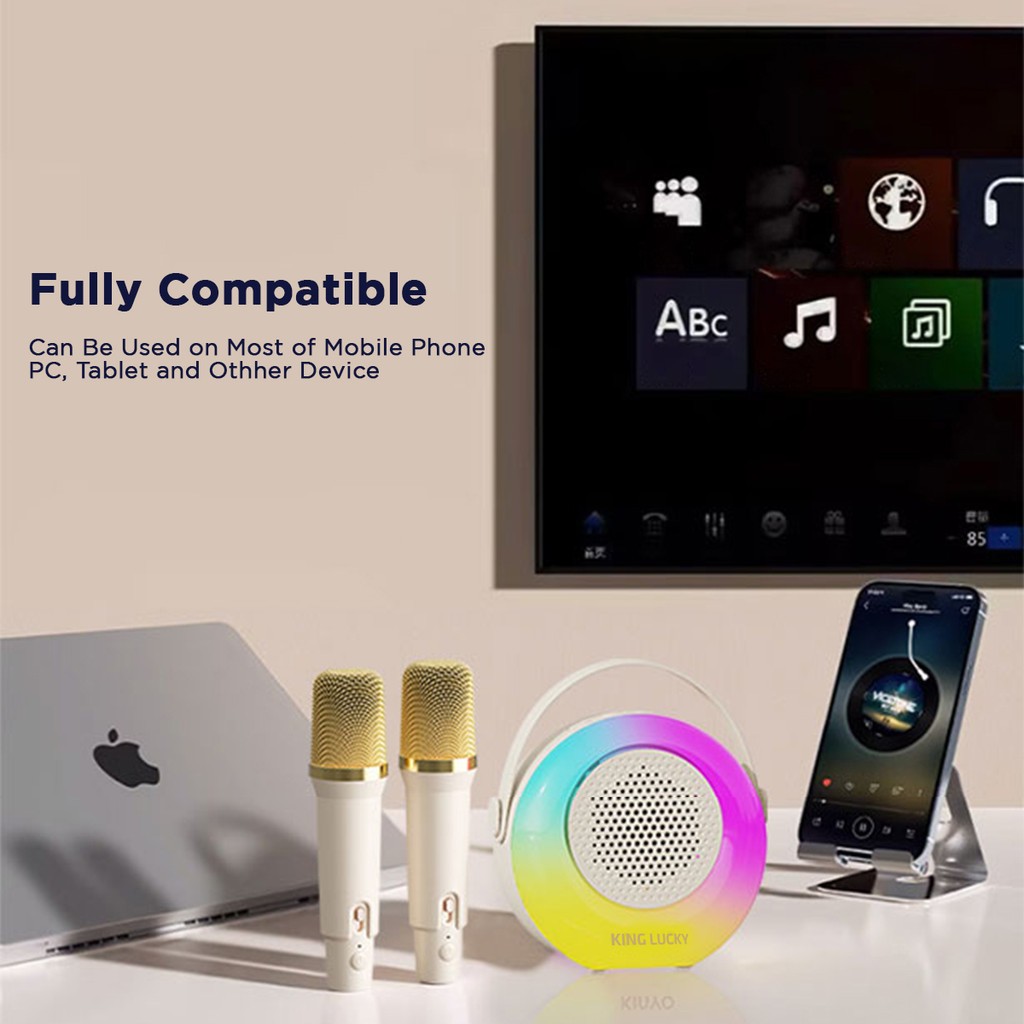 KINGLUCKY Mini Speaker Bluetooth Karaoke Speaker 2 Mic 1 Karaoke Bluetooth Full Bass Portable Wireless