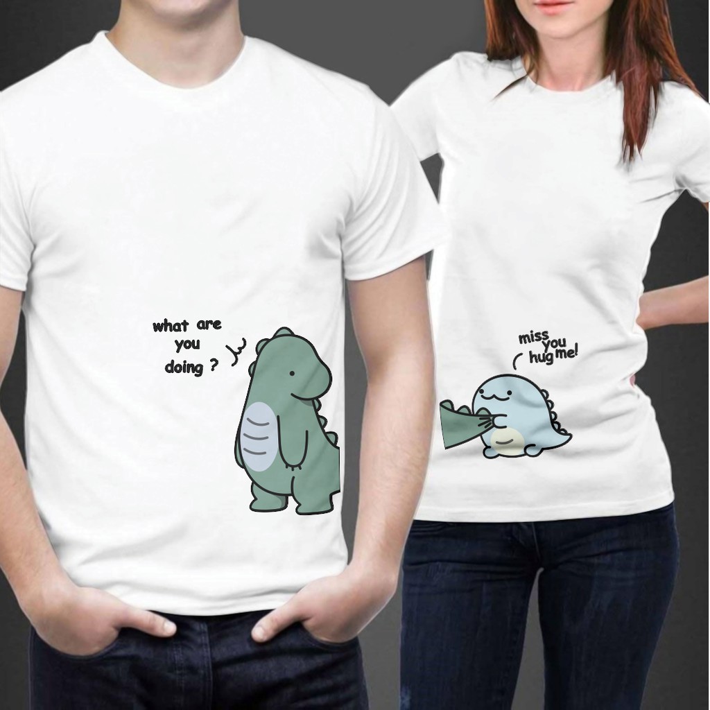 KAOS COUPLE KAOS PASANGAN PRINT DINO HUG T SHIRT