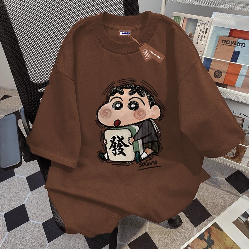 Mahjong Crayon Shin Kartun pola pencetakan Gaya Amerika baju atasan wanita terbaru kaos pria oversize couple t shirt vintage