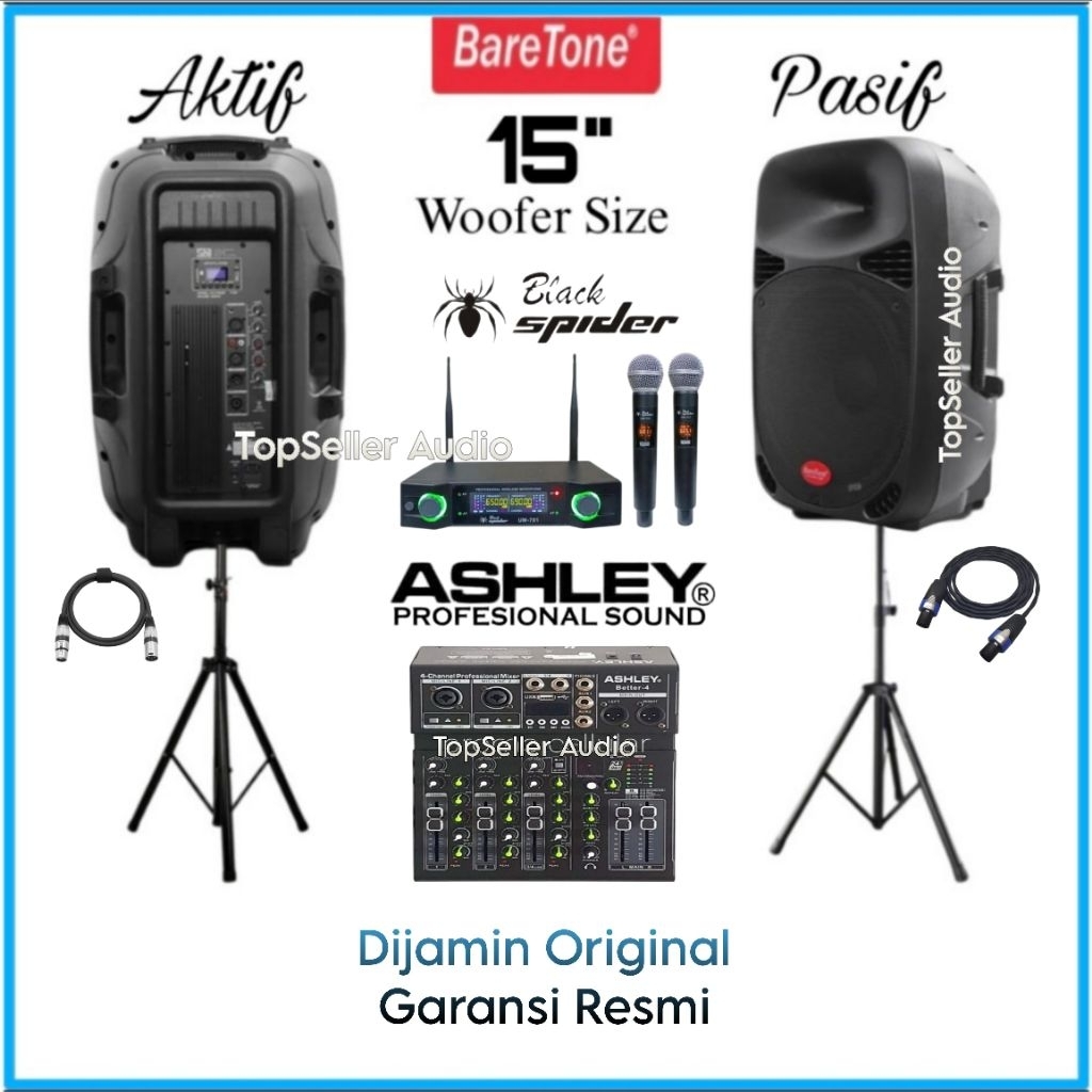 Paket Sound System Karaoke Speaker Aktif Pasif 15 Inch BareTone Original Active Max15Mb Pasif Max15Mw Bluetooth Mic 2 Wireless Original Komplit 1 Tahun