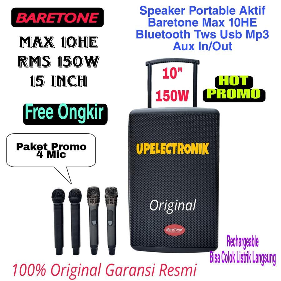 Speaker Portable 10 Inch Baretone MAX10HE 150 Watt Bluethooth Tws Original