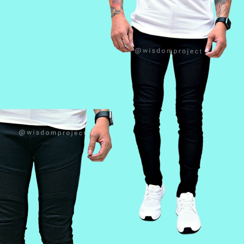 LEOPED - CELANA JEANS BIKERS SKINNY RIPPED PRIA BLACK WASHED TERLARIS - MAT SOTFJEANS -ORI