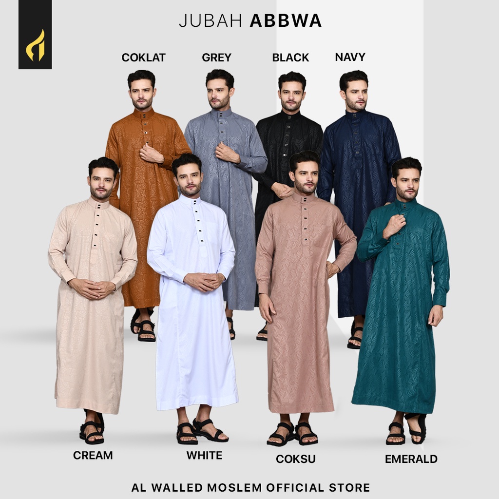Al Waleed Moslem Jubah Pria Abbwa Motif Embos Warna Cokelat