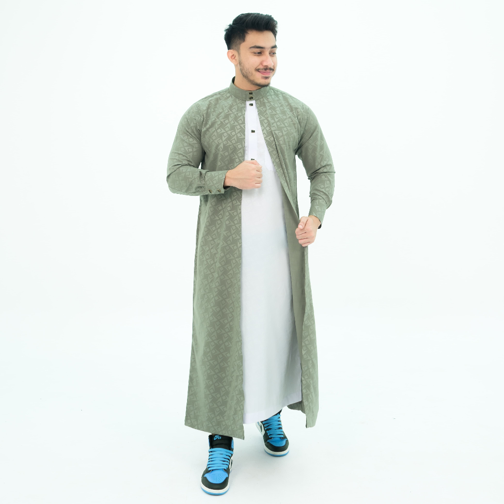 Jubah Reguler luaran manset Jubah Gamis Pria Jubah pria muslim jubah alfaan jubah sultan mewah Panjang kancing katun mot