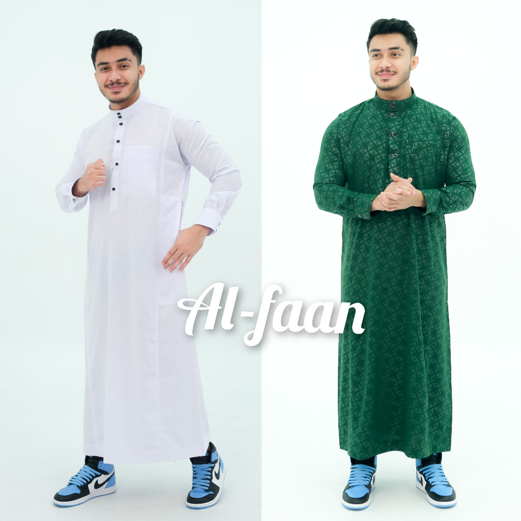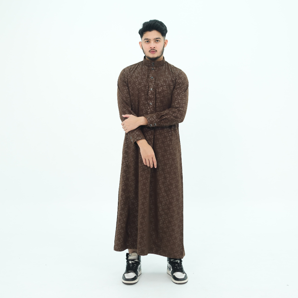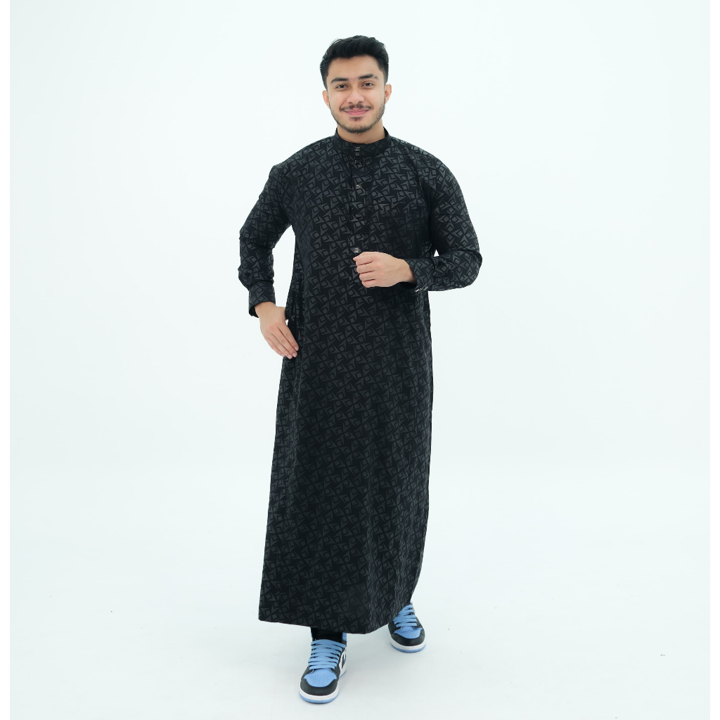 Jubah Pria Gamis pria motif embos lengan panjang manset kancing robes hitam Jubah Pria Muslim Pria Jubbah Alfaan terbaru