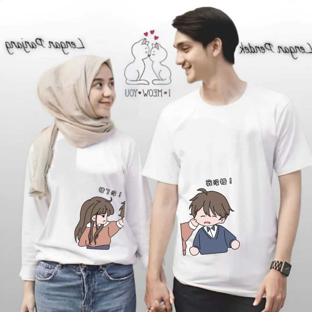 VLN Baju Kaos Couple Boy Girl Pasangan Pria Wanita Lengan Panjang Dan Lengan Pendek Bahan Premium