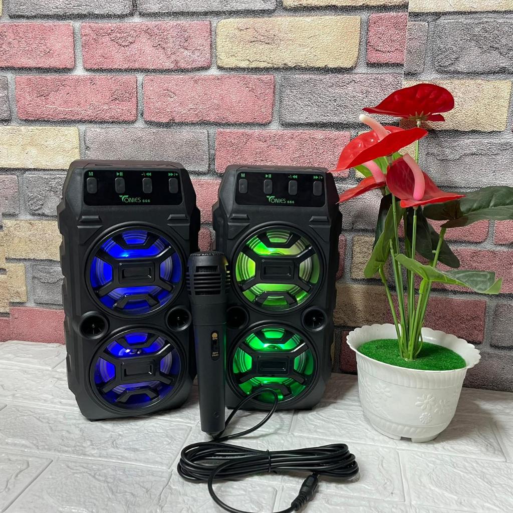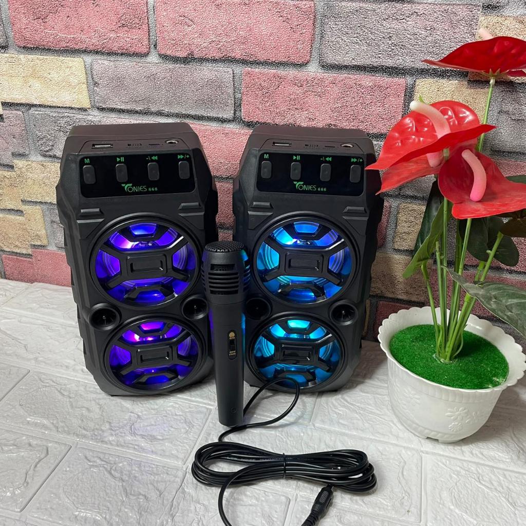 Speaker Bluetooth Bonus Mic Tonies 666 Bass Microphone Karaoke Rbg Lampu Portable Speakers Wireless