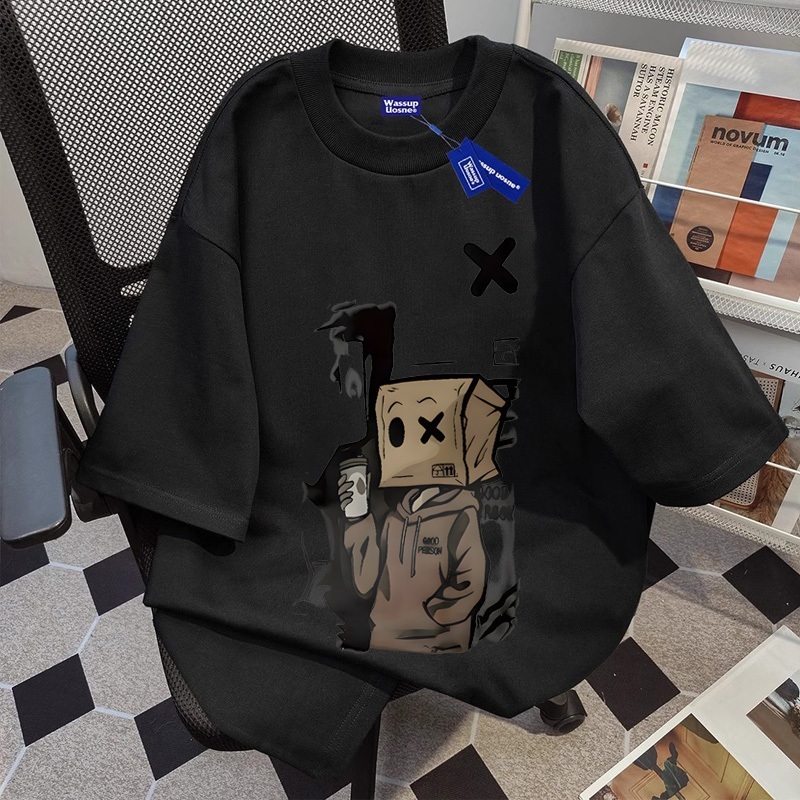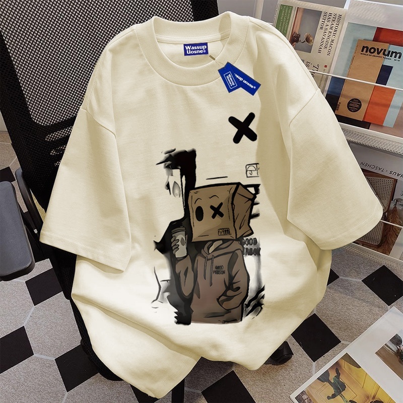 Gaya Hong Kong Kartun pencetakan Lengan pendek baju atasan wanita terbaru kaos pria oversize couple t shirt vintage 9 16