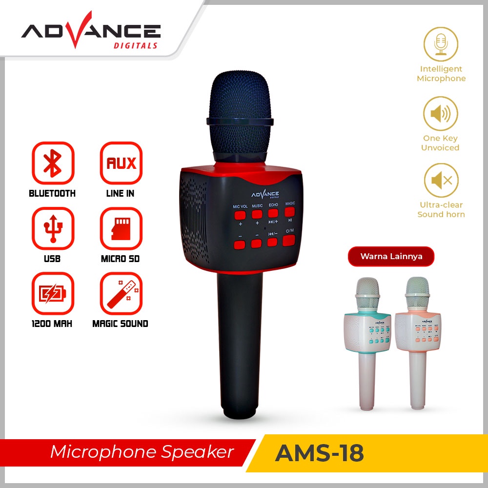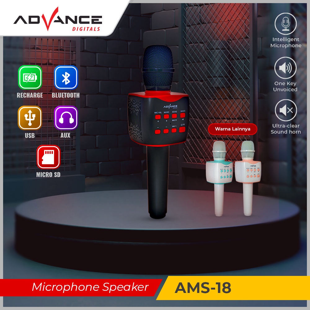 Speaker Mic Wireless Karaoke Bluetooth Murah Advance AMS 18 Resmi