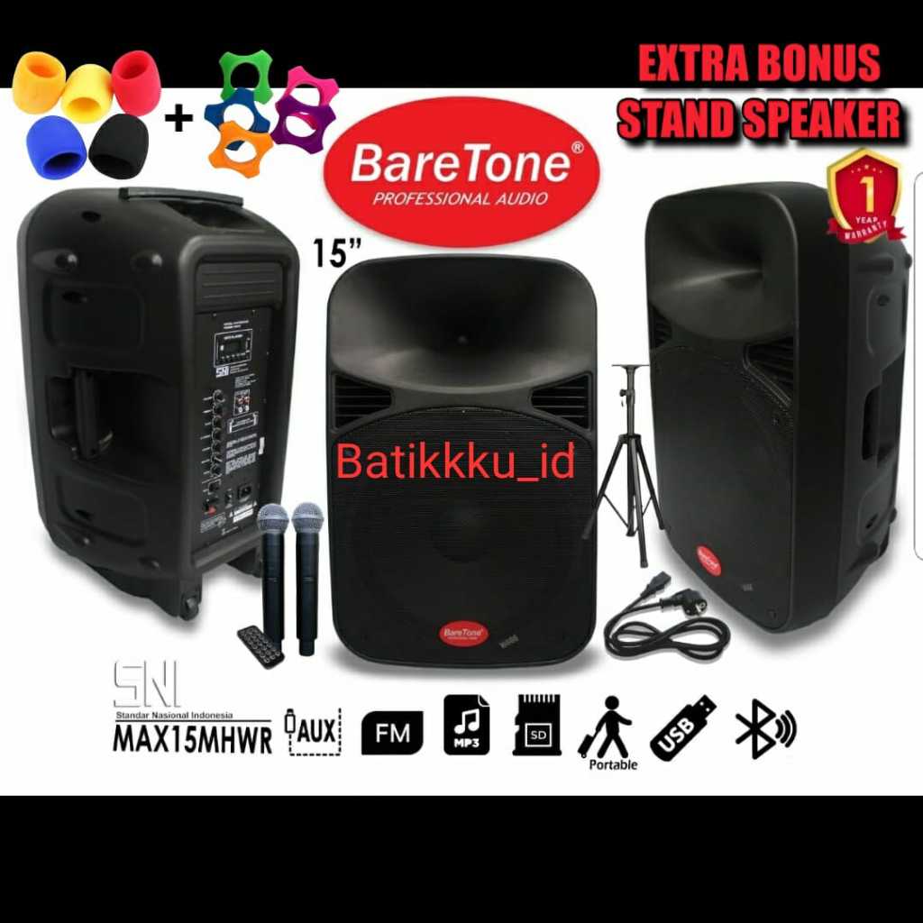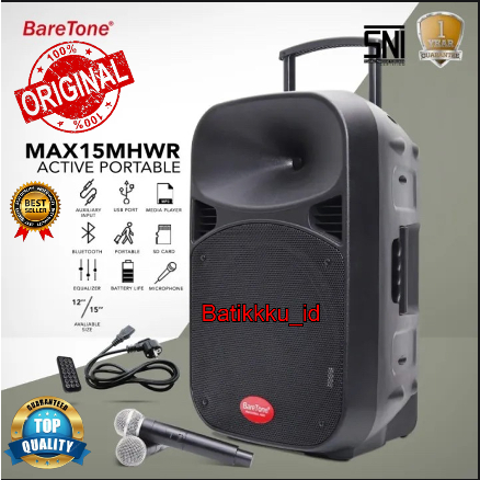 Speaker Aktif Portable BARETONE MAX 15 MHWR MAX15MHWR ORIGINAL 15 INCH FREE 2 MIC WIRELESS 15MHWR