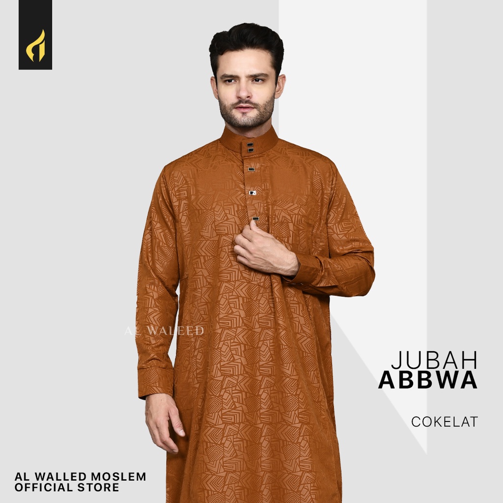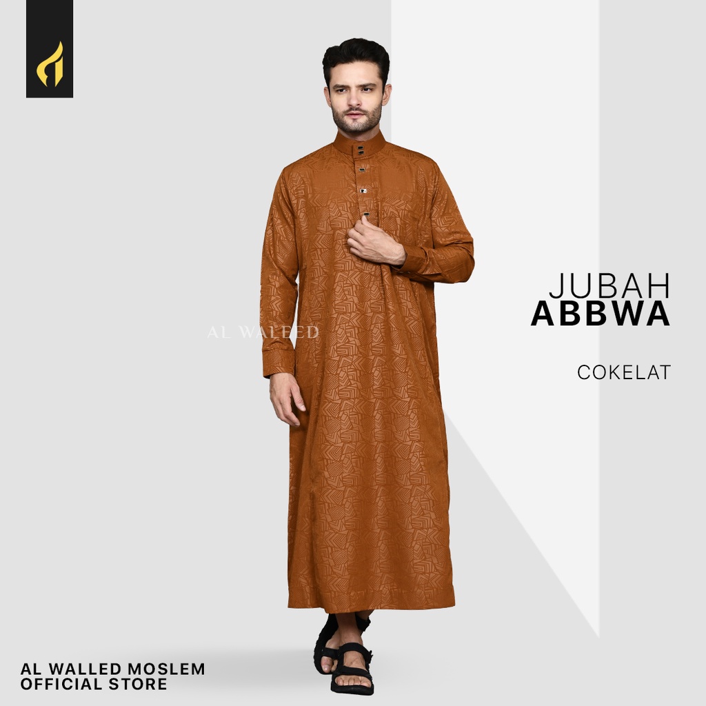Al Waleed Moslem Jubah Pria Abbwa Motif Embos Warna Cokelat