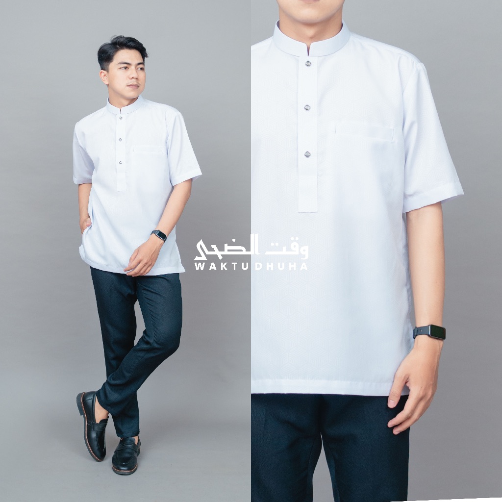 WAKTU DHUHA - Koko Dhuha Baju Muslim Pria Lengan Pendek Motif Embosse Hexagonal