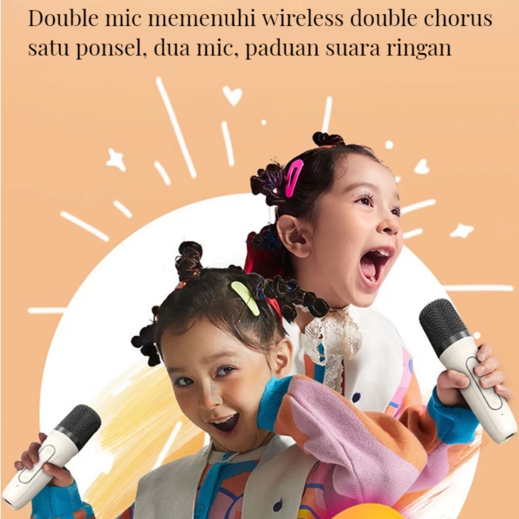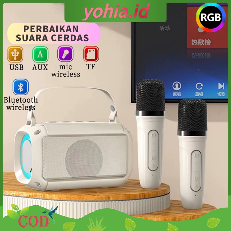 2MIC Speaker karaoke bluetooth 1 SET RGB Wireless 2 Warna Dapat terhubung ke HP TV,Komputer 1 tahun