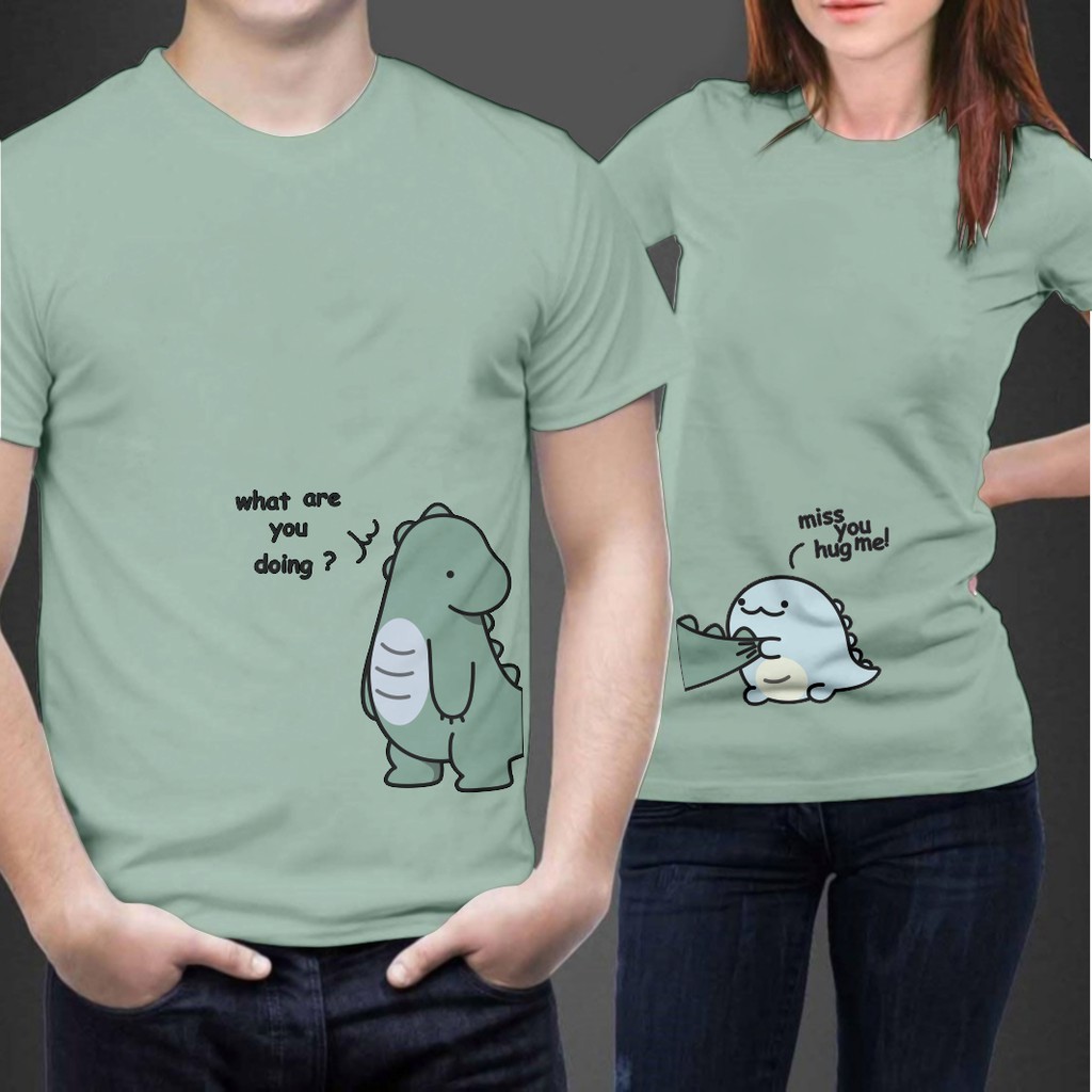 KAOS COUPLE KAOS PASANGAN PRINT DINO HUG T SHIRT