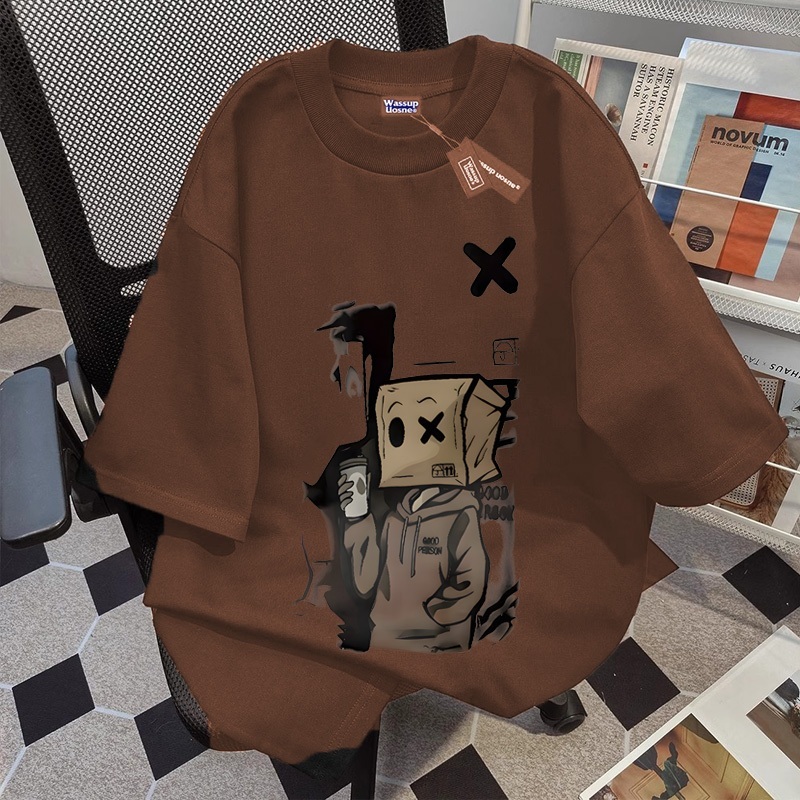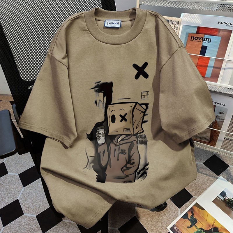 Gaya Hong Kong Kartun pencetakan Lengan pendek baju atasan wanita terbaru kaos pria oversize couple t shirt vintage 9 16