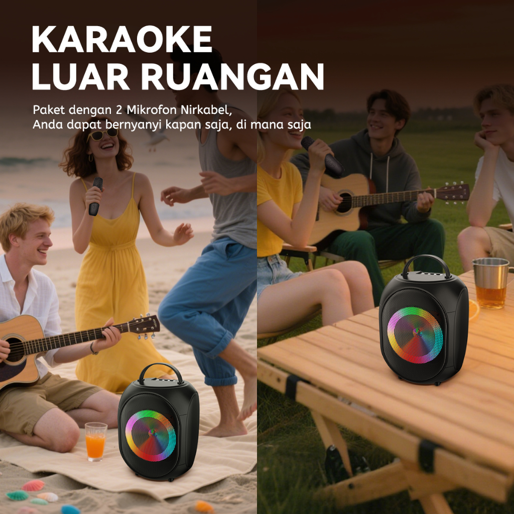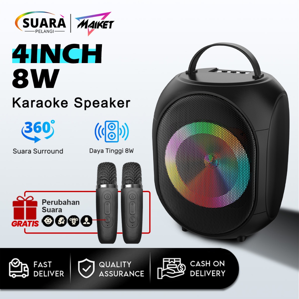 MAIKET Speaker Bluetooth Karaoke 3D Stereo Full Bass With Free 2mic Portable Salon Super Bass HD Sound RGB Light Support FM TF USB BT TWS