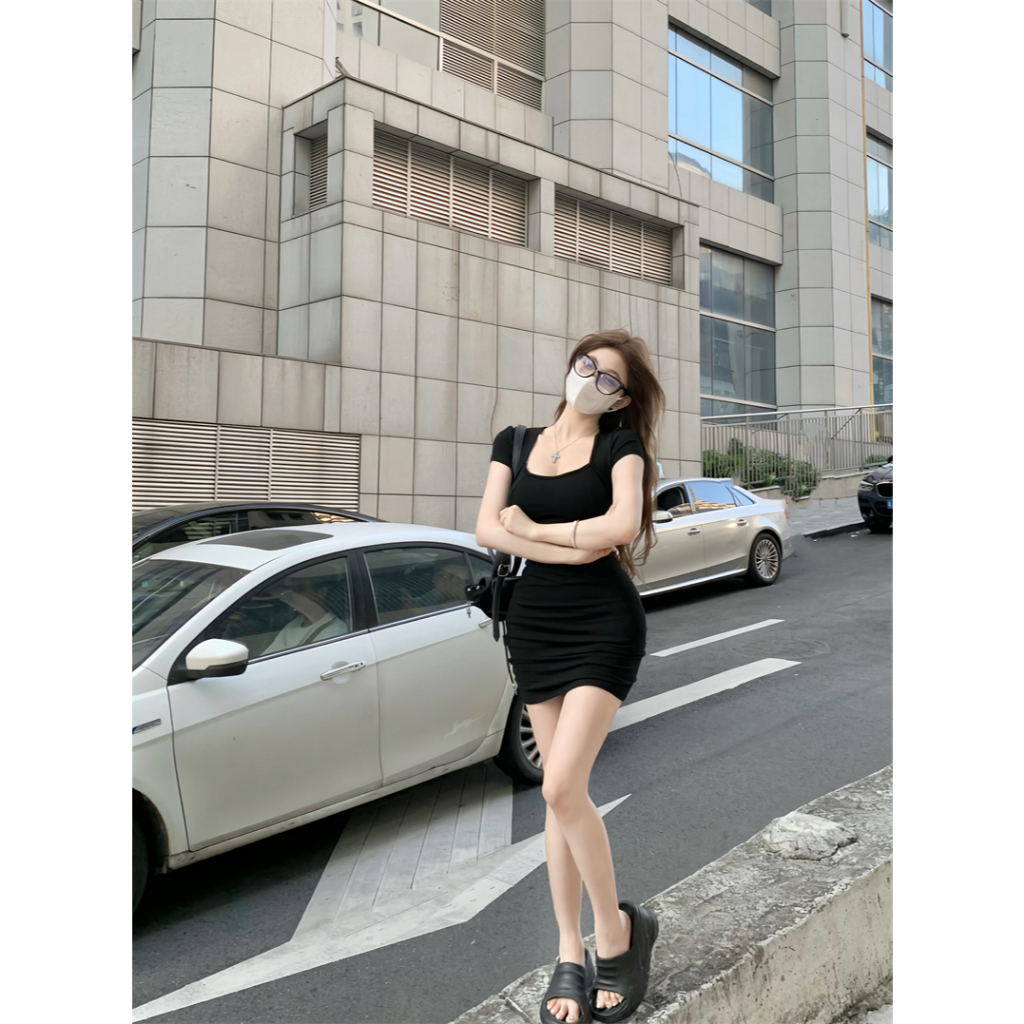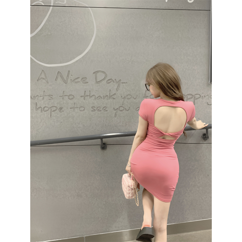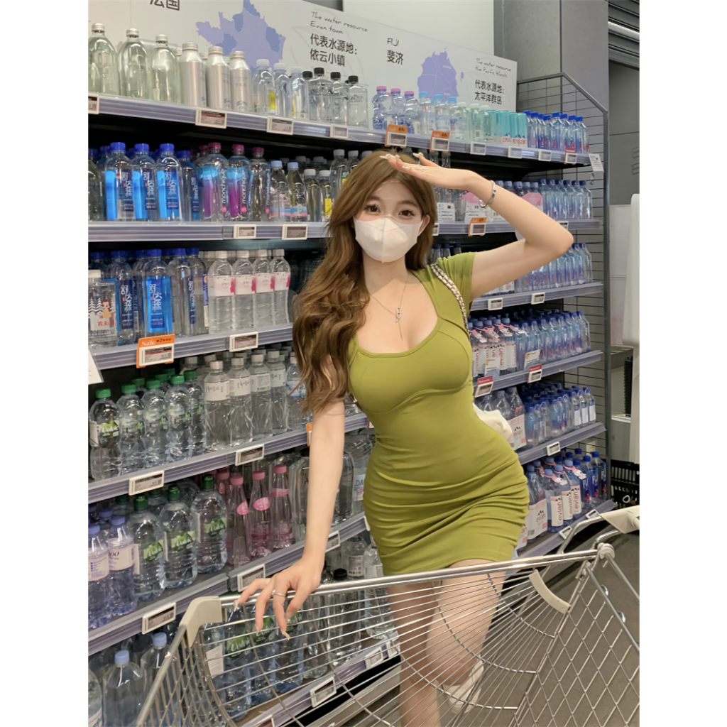 Cohan DR8006 Baju Wanita Korean y Wrap Hitam Slim Body Dress Mini Elegant Hijau S/M/L/XL