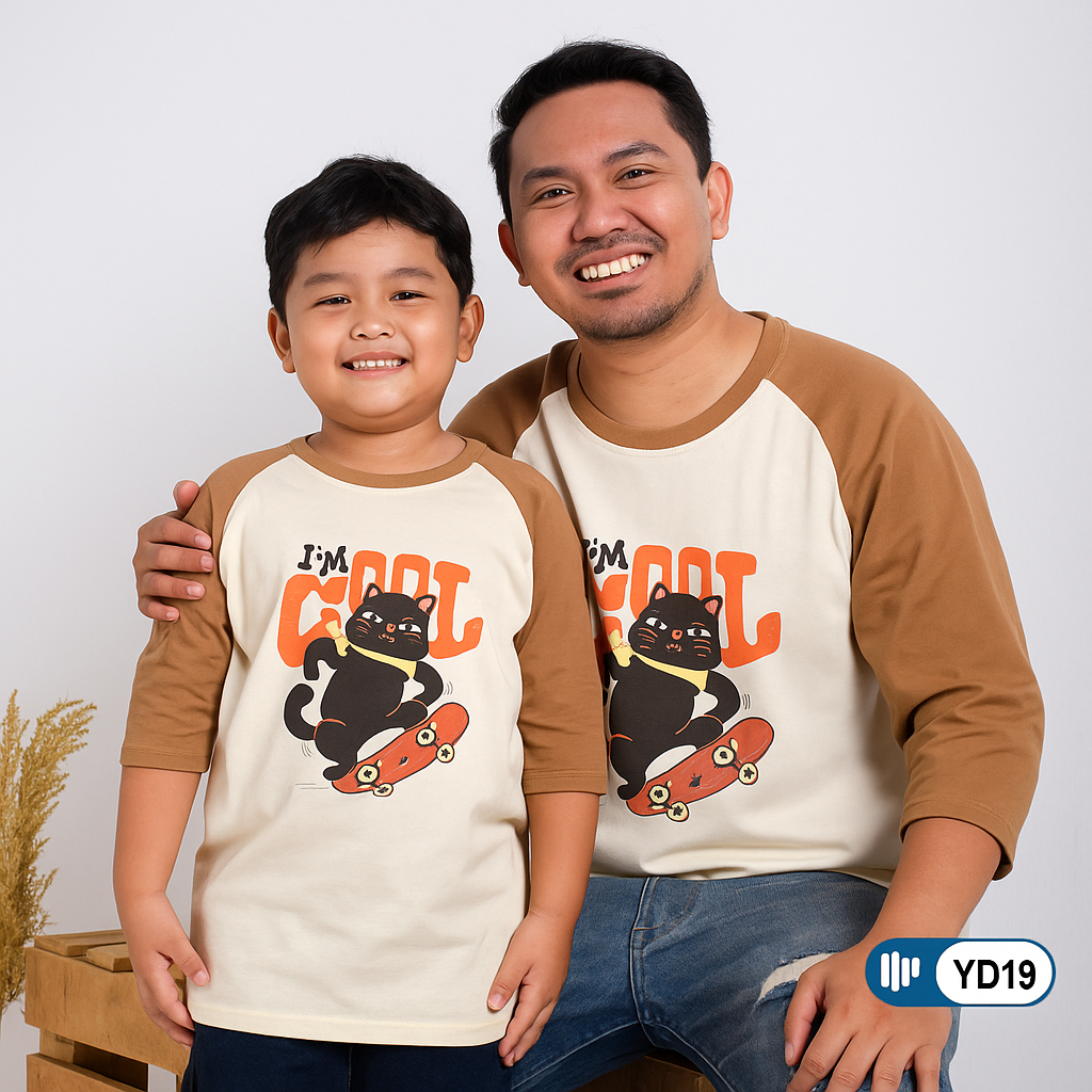 Madia Couple Kaos Raglan D3W4SA Motif I'm Cool Cat Lengan 3 4 YD19