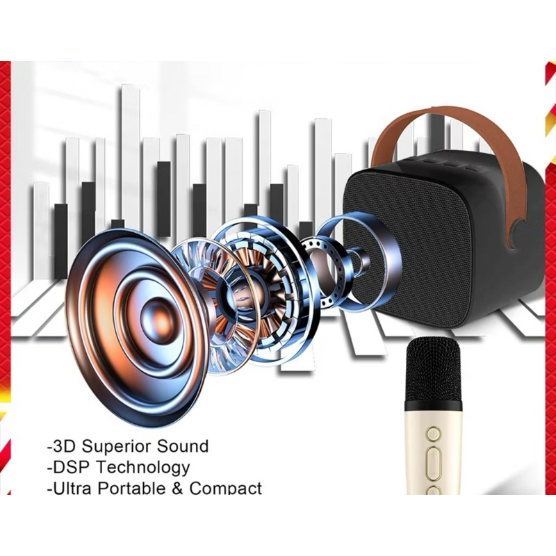 BALCK speaker bluetooth 2Mic 1 set karaoke speaker ktv Cute Wireless Lucu Portabel Luar Ran Speaker Nirkabel