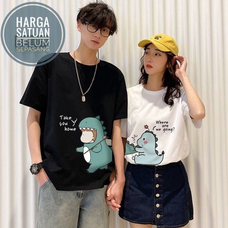 MYSTIQUE ID BAJU KAOS PASANGAN COUPLE DINO LUCU BISA TAMBAH NAMA UNTUK D3W4SA ANAK