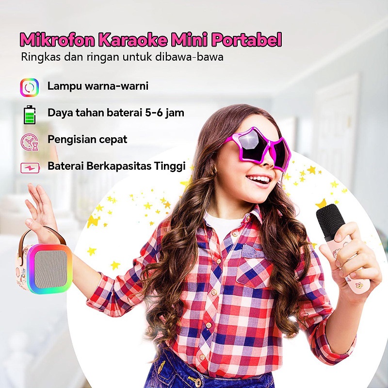 2025 model baru Wireless Mini Bluetooth Speaker K12 Karaoke Speaker 2Mic 1 Set Mesin suara karaoke HIFI Full Bass Stereo Bluetooth 5 3 Portable door KTV