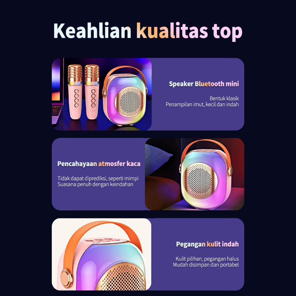 DL Speaker Bluetooth yang penuh warna Speaker Karaoke Bluetooth Mini Portable Wireless 2MIC with Microphone RGB