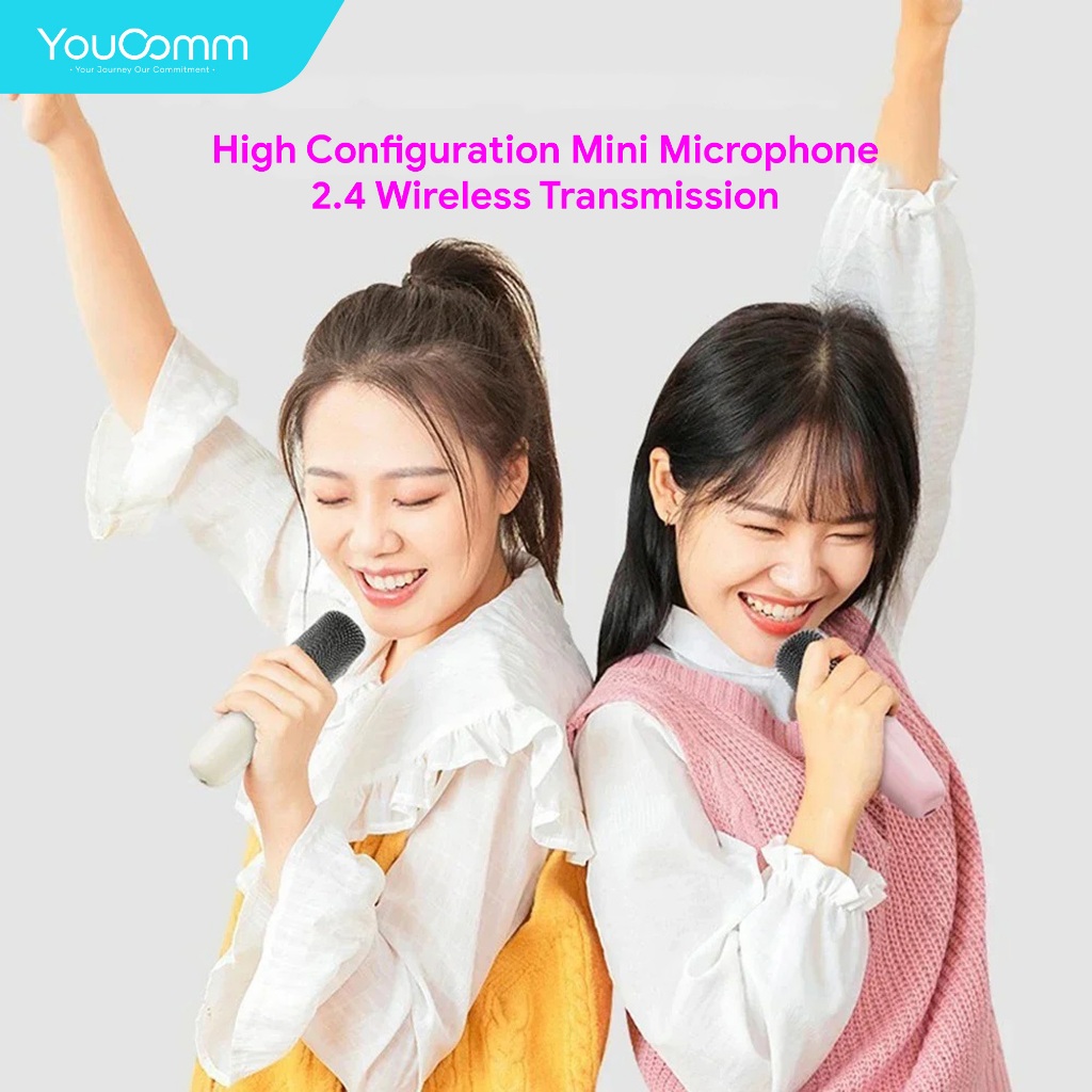 Youcomm Speaker Bluetooth 2 Mic 1 Set Karaoke Speaker KTV Cute Wireless Lucu Portabel Luar Ran Speaker Nirkabel K12