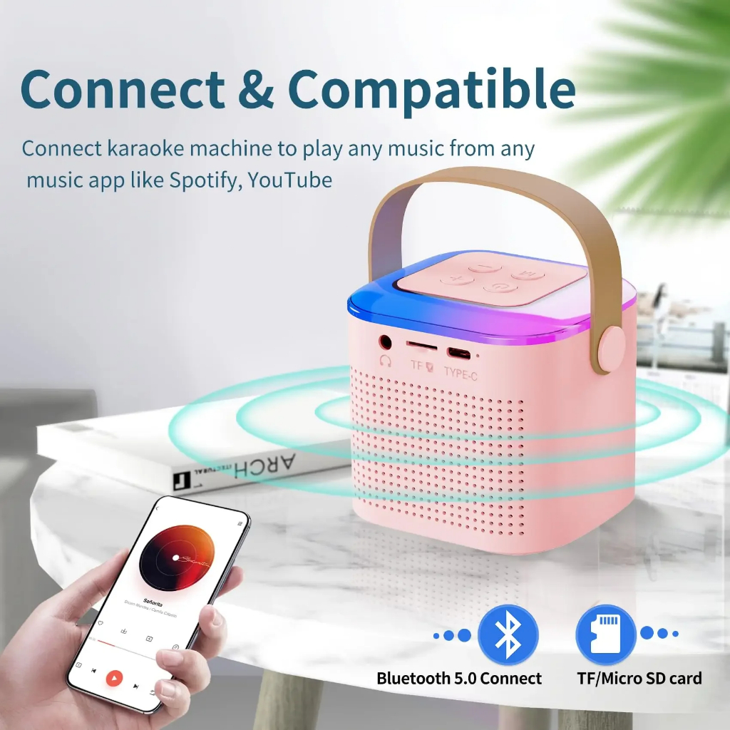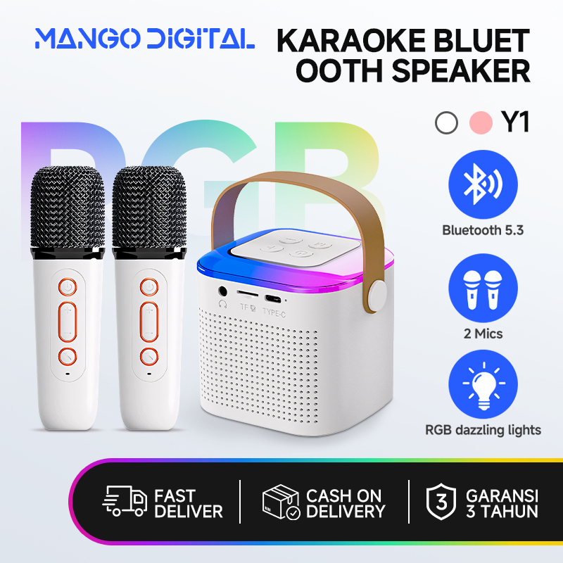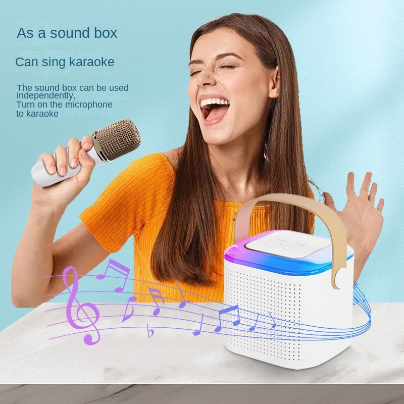 Speaker Bluetooth Karoke 2Mic 1 Set Karaoke Speaker Ktv Cute Wireless Lucu Portabel Luar Ran Speaker Nirkabel Mic Bass Super Kuat Nirkabel mic Bass Super