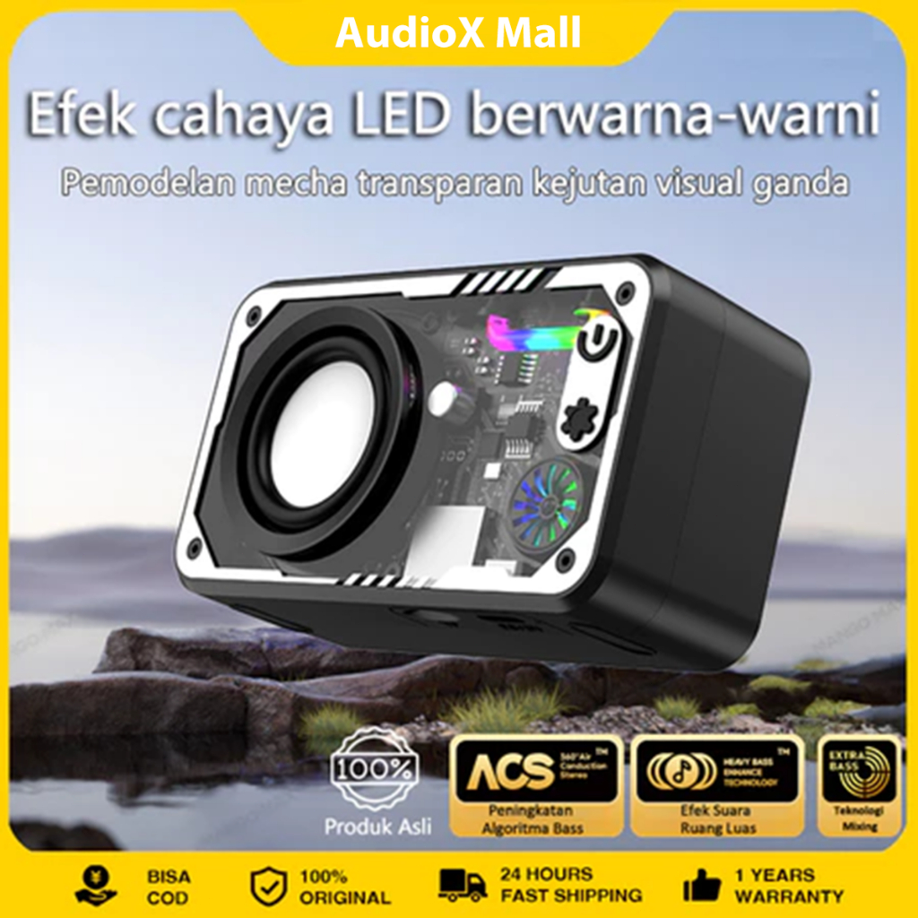 Speaker Bluetooth Pembicara Speaker Bluetooth Super Bass Pembicara Cyberpunk speaker Mini Bluetooth Ganda LED BT RGB Audio Bluetooth Transparent Speaker