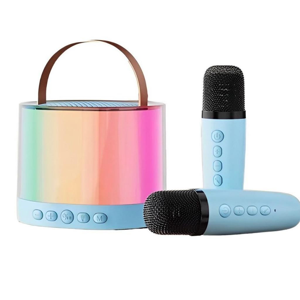 alexamarket Speaker Karaoke 2 Mikrofon Speaker Bluetooth Mini Portabel dengan Efek Pengubah Suara dan Lampu LED for Karaoke Party