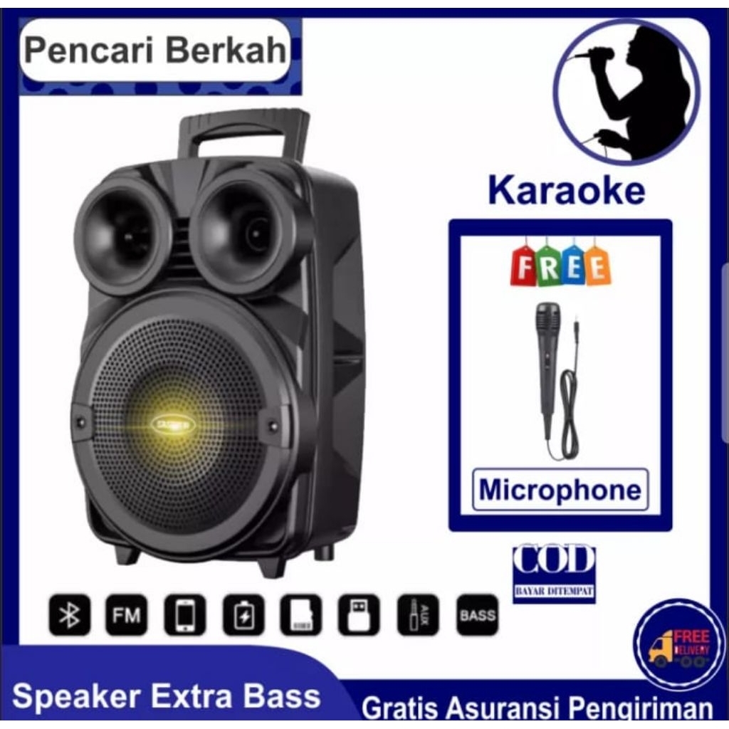 Speaker Bluetooth Karaoke Portable 3381 Extra Bass Gratis Microphone Bisa FM Radio USB Memory Card