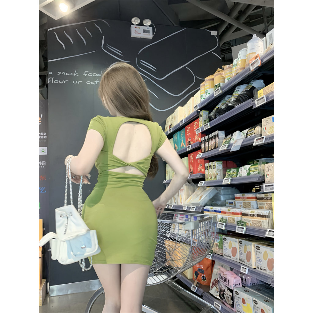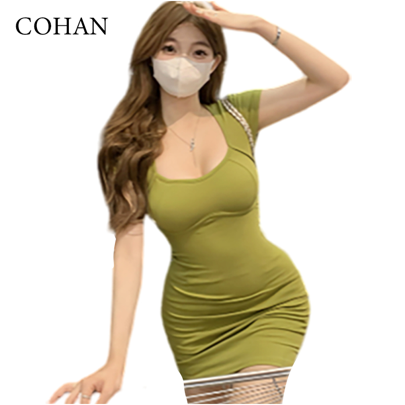 Cohan DR8006 Baju Wanita Korean y Wrap Hitam Slim Body Dress Mini Elegant Hijau S/M/L/XL