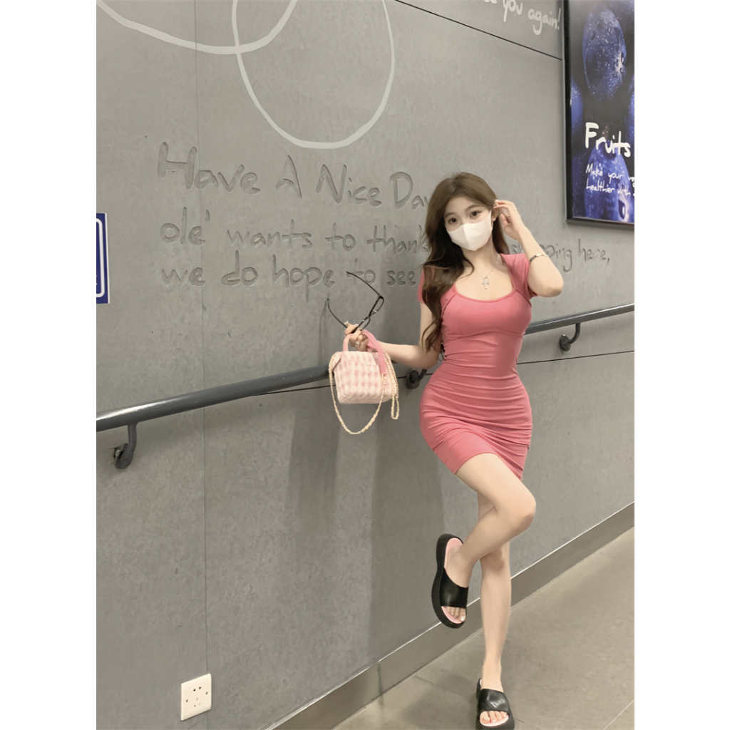 Cohan DR8006 Baju Wanita Korean y Wrap Hitam Slim Body Dress Mini Elegant Hijau S/M/L/XL