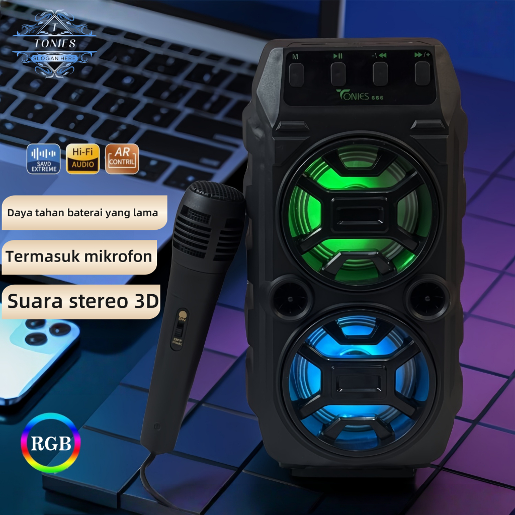Speaker Bluetooth +bass Microphone Karaoke Rbg Portable Speakers Wireless 666 Bonus Mic 6inci