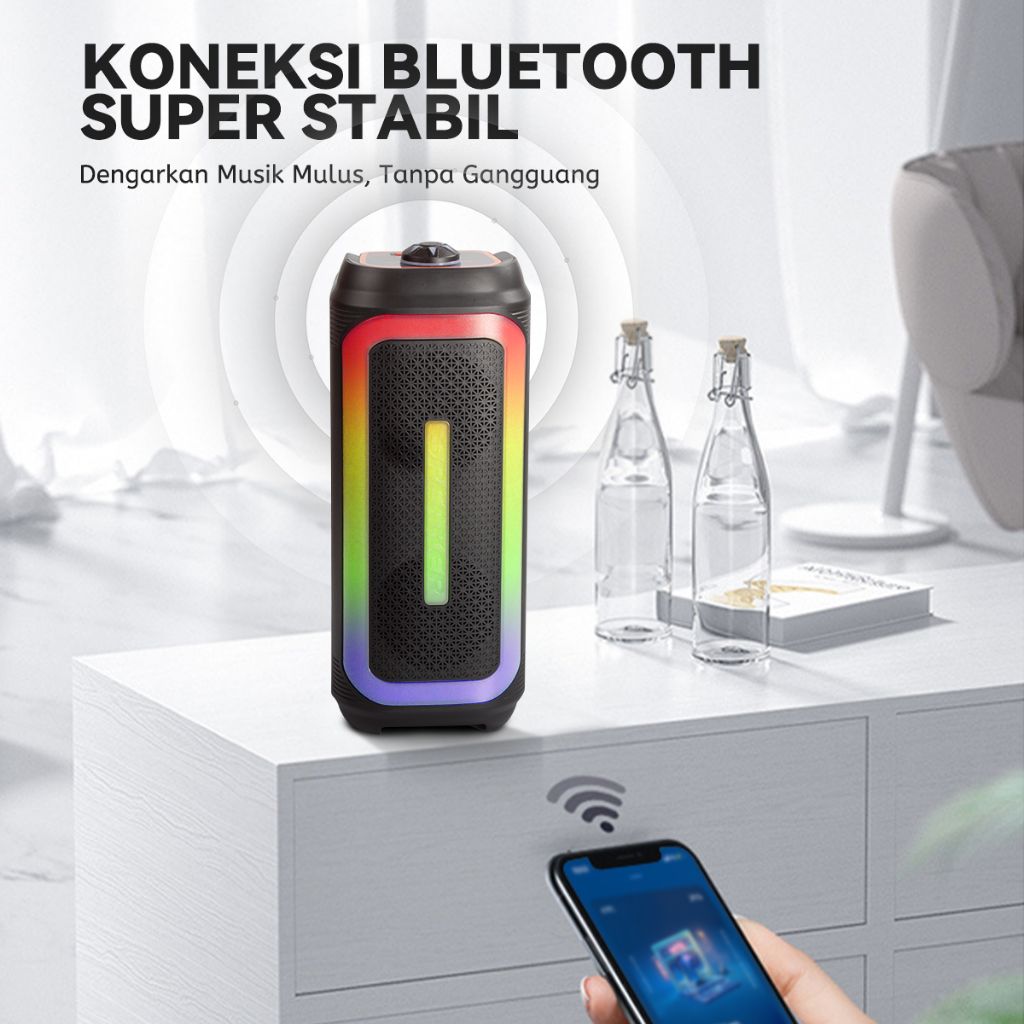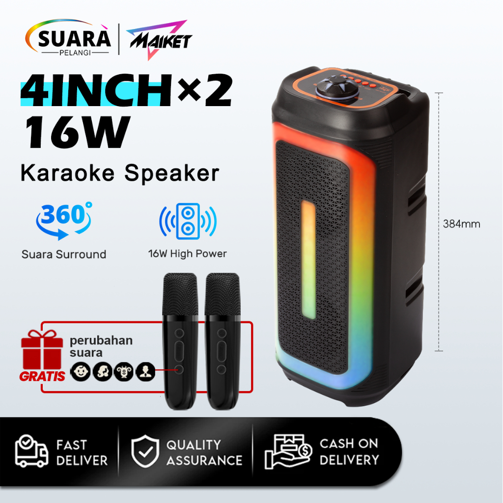 MAIKET Speaker bluetooth super bass Profesional Speaker System 2 karaoke Mic HIFI Stereo Sound door portable With RGB LED Light