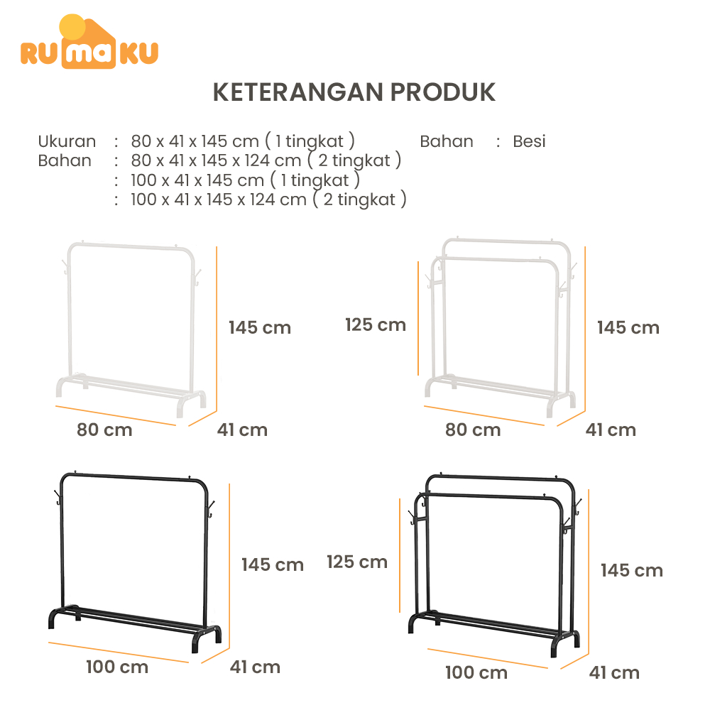 RMK Stand Hanger Gantungan Baju Berdiri Bahan Besi Tempat Gantung Baju Gawangan Baju Rak Baju Serbaguna