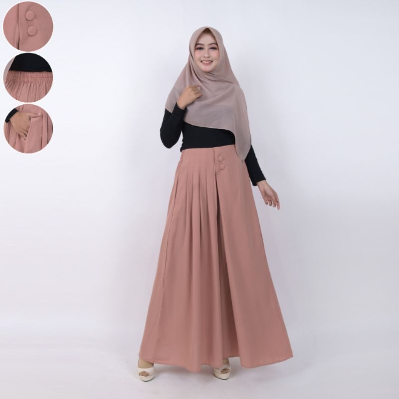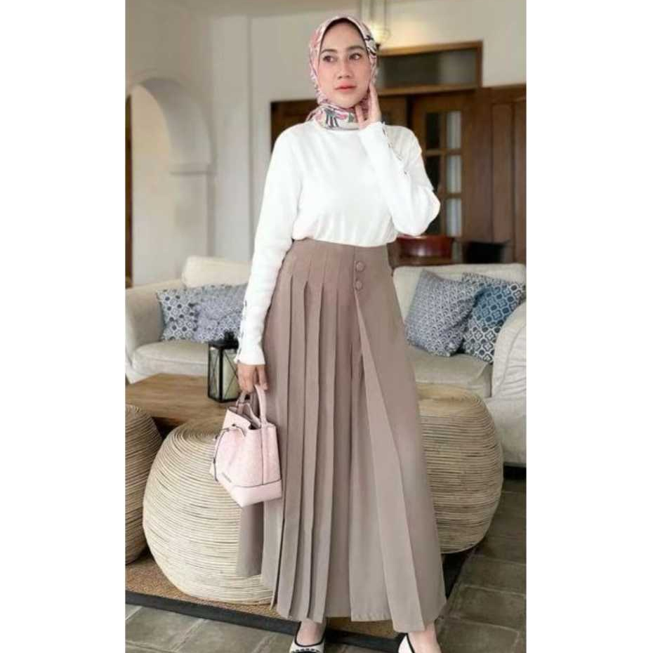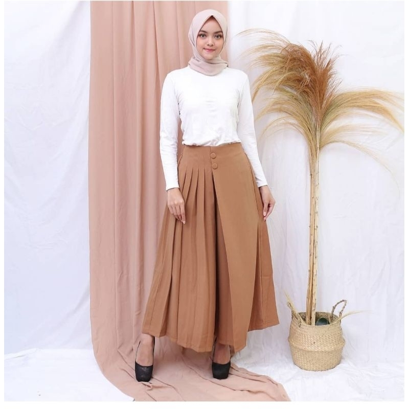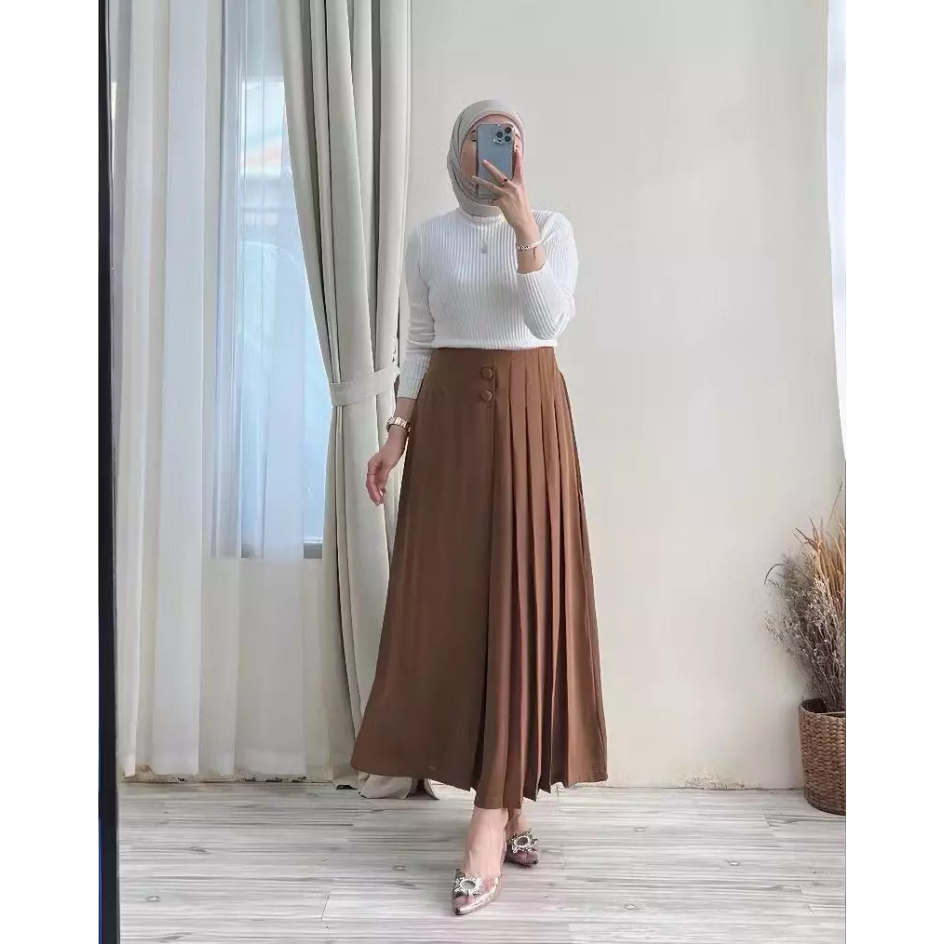 CULLOTE PLEATS - CELANA KULOT HUSNA KANCING 2 - Celana Wanita Highwaist Premium - Rok Kulot Cellie