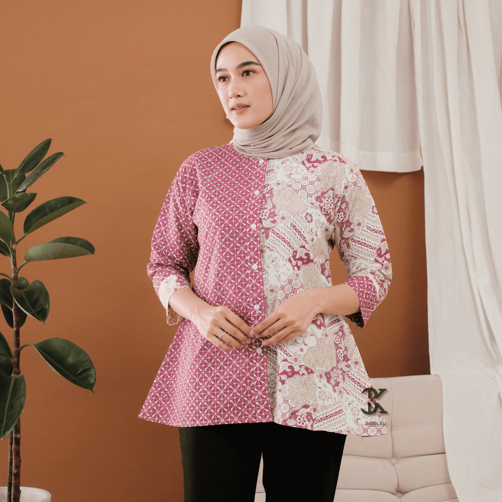 Baju Batik Wanita Modern Atasan Blouse Batik Kerja Kantor Wanita Model Terbaru 2025