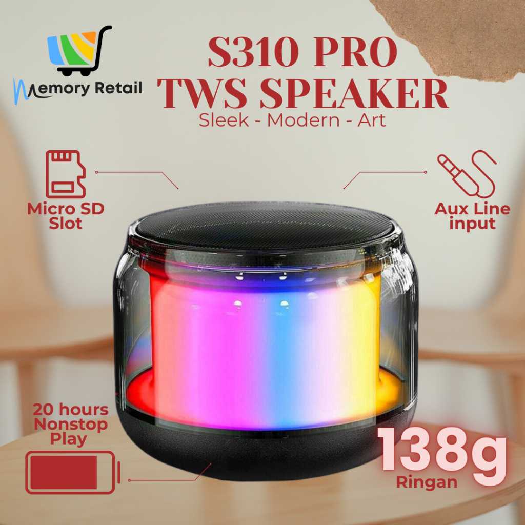Speaker Bluetooth Portable S310 PRO TWS Suara Jernih Estetik Bass Kuat Wireless Speaker Murah Stereo Audio Extra Bass Waterproof Tahan Air