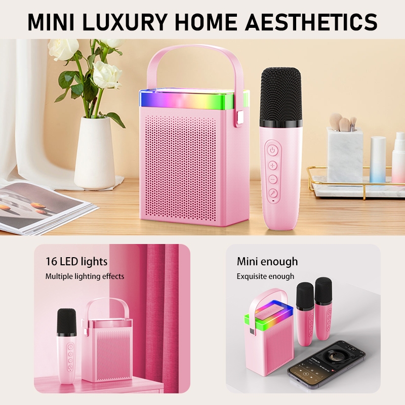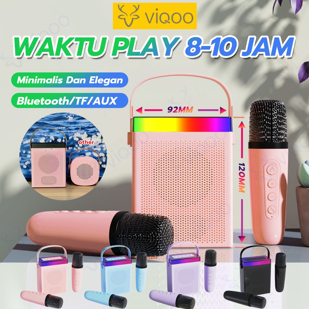 Viqoo 3 In 1 Speaker Bluetooth Mikrofon Karaoke Set Bluetooth Mini Full Bass Mudah Dibawa Nirkabel Speaker dan Mikrofon S56