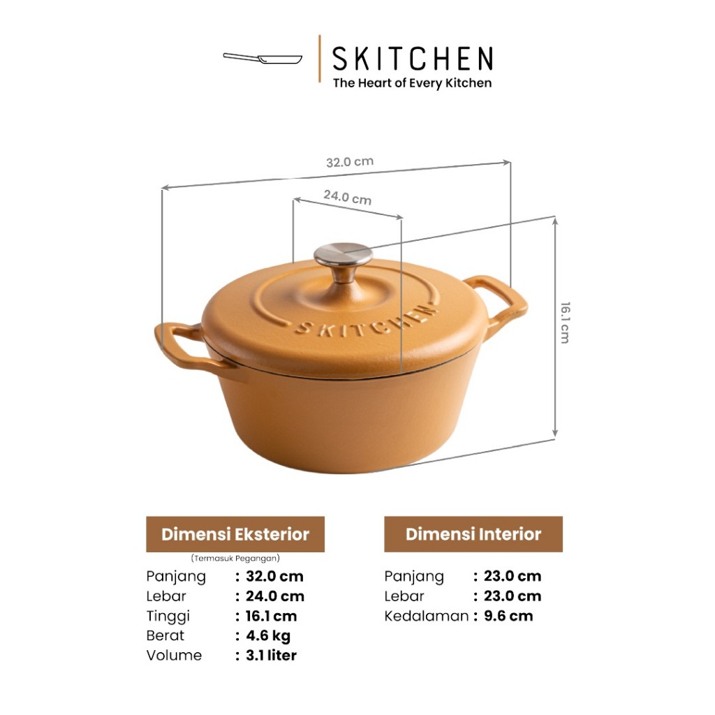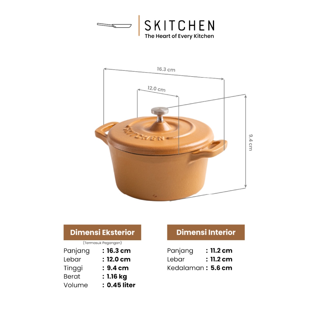 SKITCHEN Aurora Dutch Oven - Enamel Cast Iron, Food Grade, MPASI, Sourdough, Slow Cook