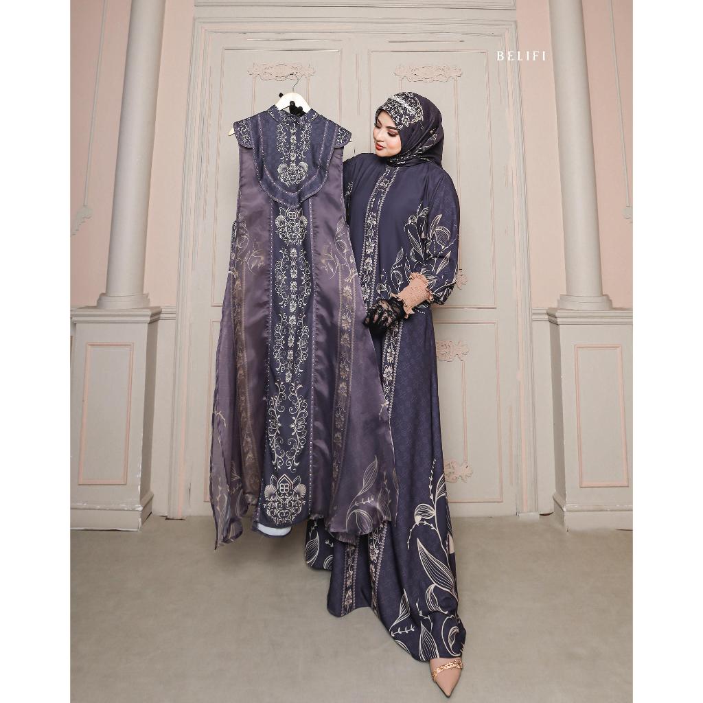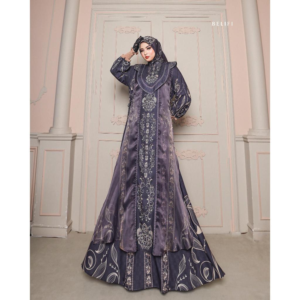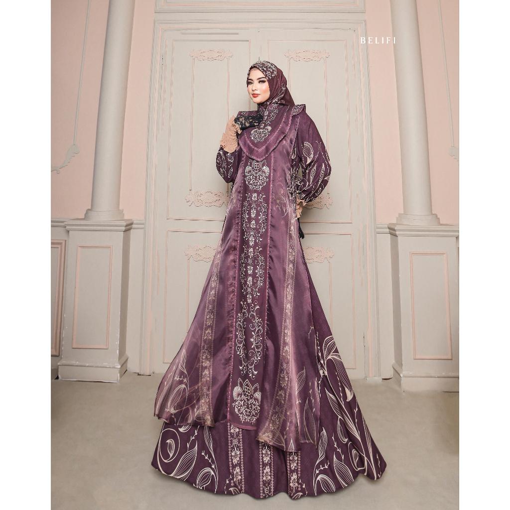 BELIFI | Zhafira Syari Gamis Set Outer Organza dan Hijab Voal japan Baju Sultan Muslimah Mewah