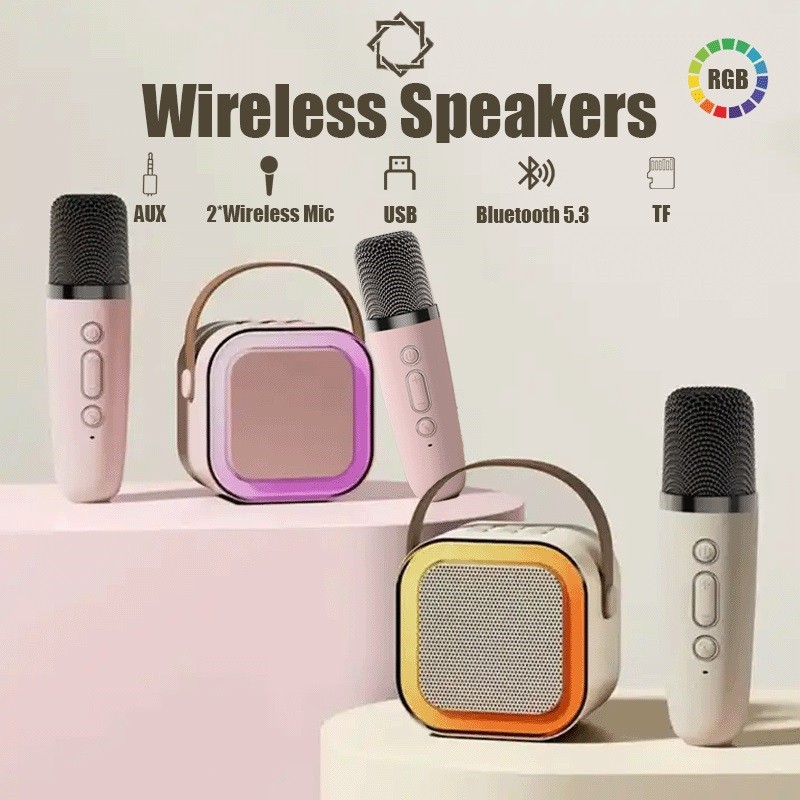 DL Bluetooth Mini Speaker Karaoke Set 2 Mic KTV Mini Portable Dual Microphone Speaker