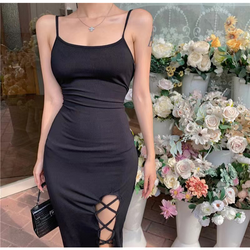 Cohan DR77102 Dress Mini Sleeveless Wanita Fashion Outfit Seksi Bodycon Memiliki Ikat Tali Samping Hitam Brown S/M/L