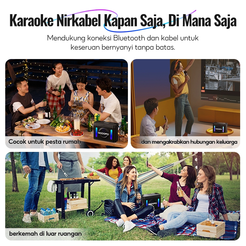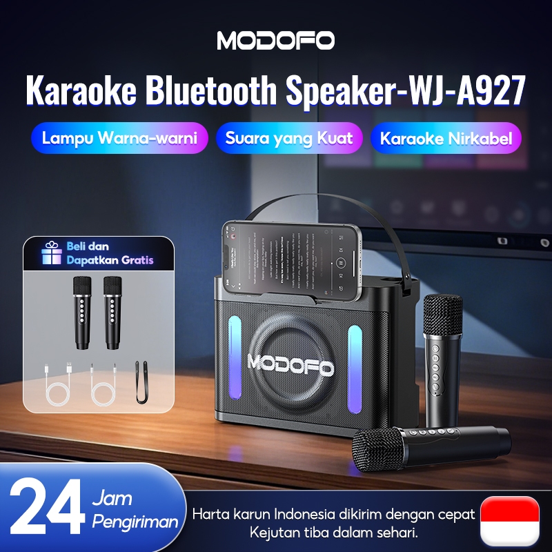 MODOFO Speaker Bluetooth Karaoke Mini Advance 2 Mic Set Lengkap Portabel Wireless Super Bass
