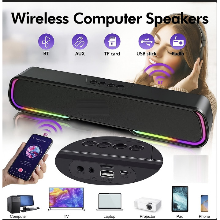 SMARTCOM Wireless Bluetooth 5 0 Speaker TV Soundbar Portable RGB Audio Speaker Portable Super Bass