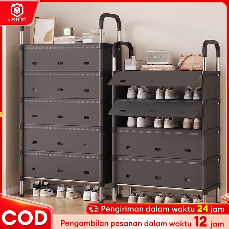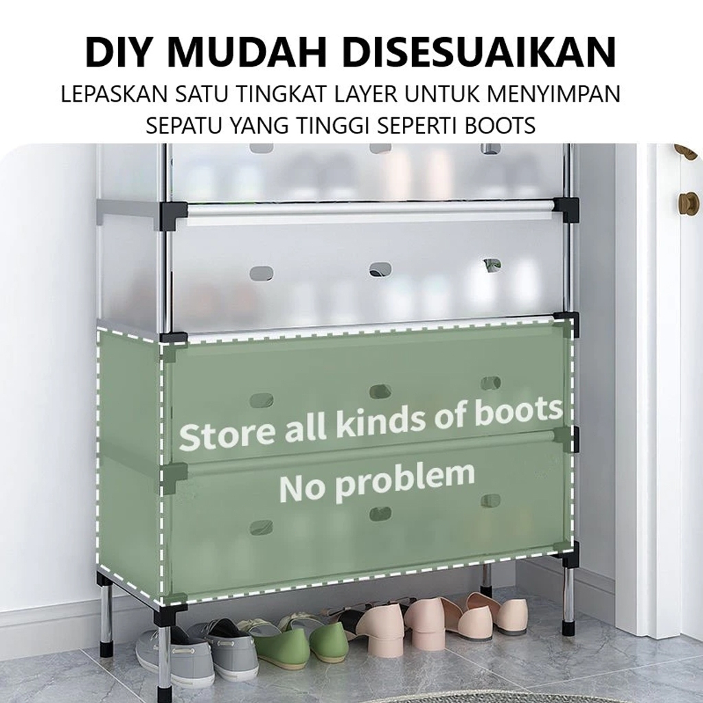 Rak Sepatu Tertutup Anti Debu 3/4/5/6 Susun Serbaguna Gantungan Tas Pakaian Rak Penyimpanan Dengan Penutup Shoe Rack