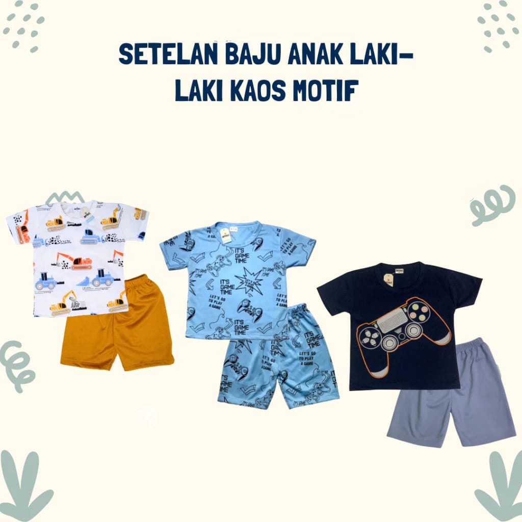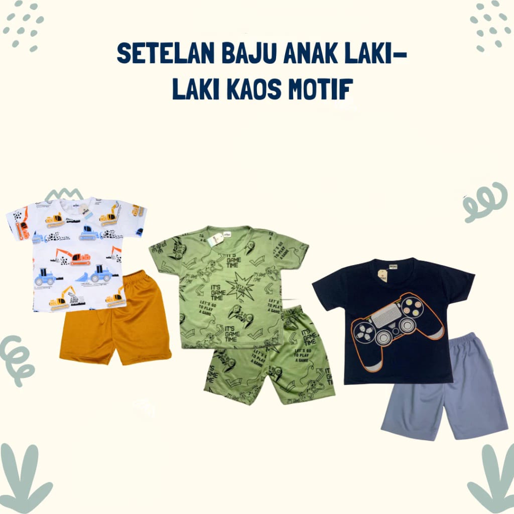 Baju Harian Anak Laki-Laki Setelan anak laki laki one set anak 3-8 Tahun One Set Truk, Game Time, Game Stick